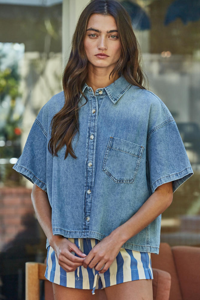 A dream shirt! A perfect crop. Roomy and loose and 100% cotton.