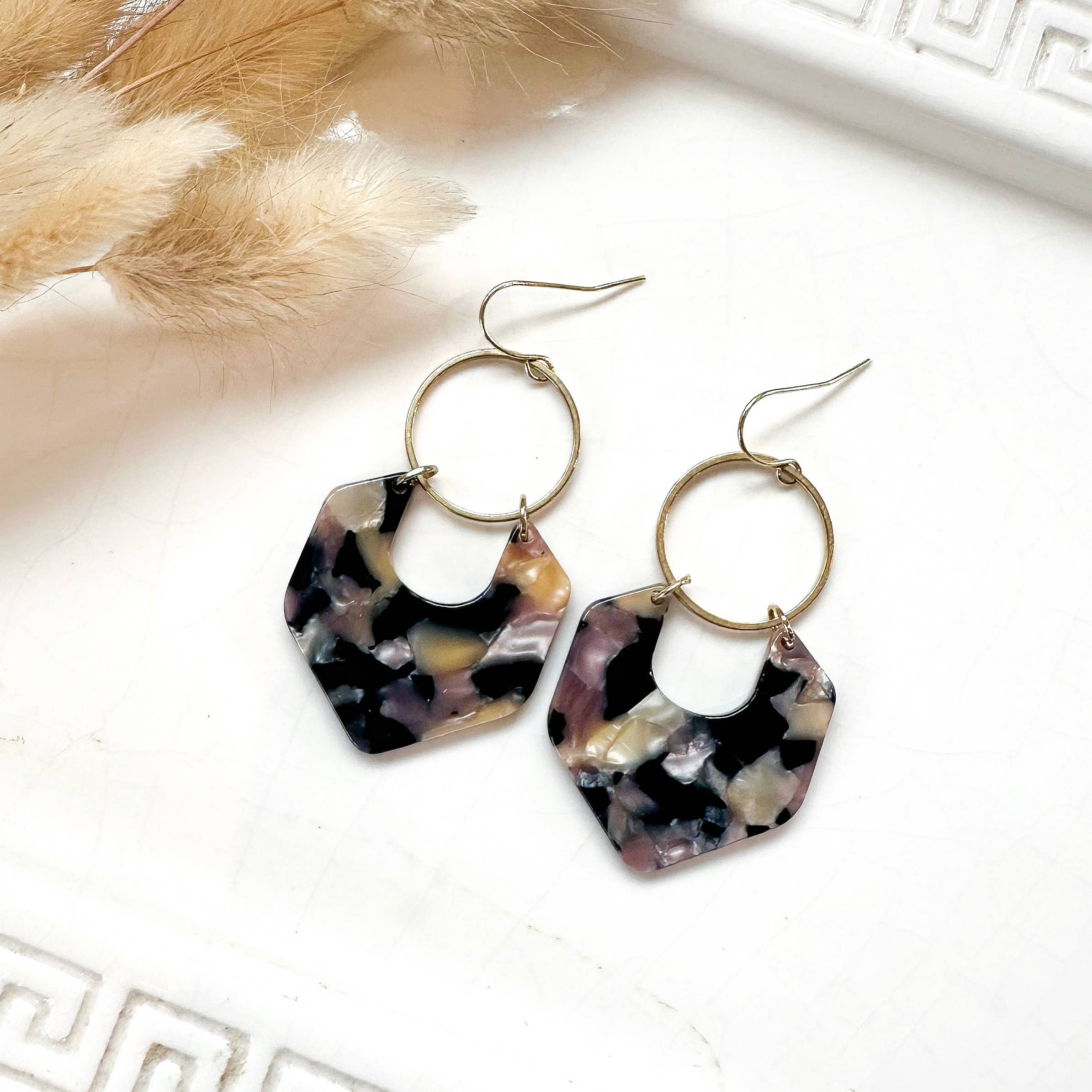 Acetate Hexagon Dangle Earrings