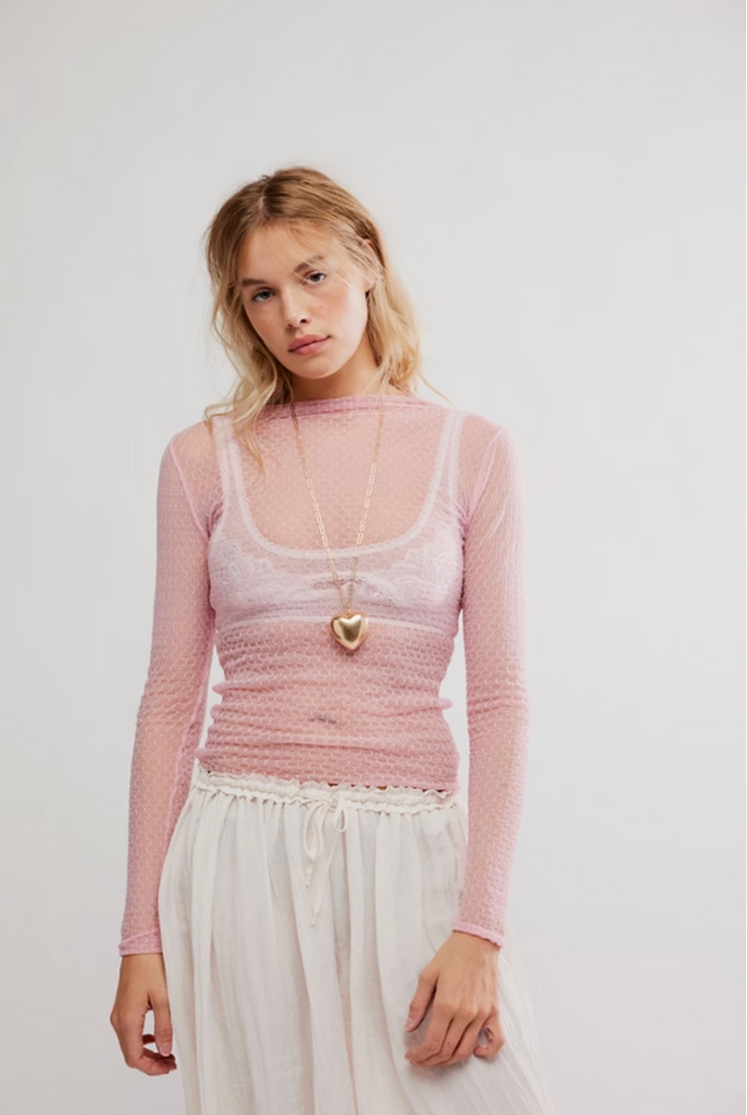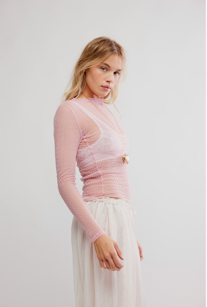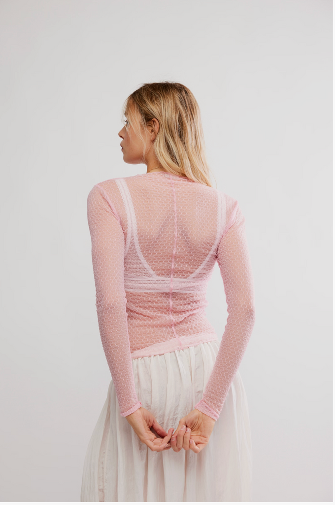 Add the perfect layer to every look with this effortless long-sleeved top featured in a sheer, textured fabrication, ideal to style over anything from a tank to a barely-there bralette.