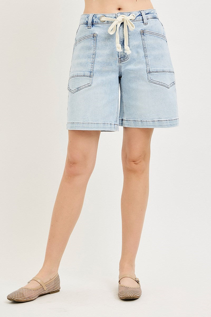 SLOUCHY JORTS WITH WAISTBAND DRAWSTRING AND EYELET DETAILS