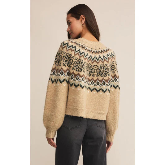 The Z Supply Kenaby Fair Isle Sweater in Oatmeal Heather combines understated elegance with everyday comfort. This midweight knit features a refined blend of acrylic, nylon, and cotton that provides gentle warmth without excess bulk. The relaxed silhouette and classic crew neckline offer versatile styling—layer it effortlessly over basics or wear it as a standalone piece. Subtle Fair Isle detailing and a warm oatmeal tone create a timeless aesthetic that transcends seasonal trends. Long sleeves and flattering fit that moves with you throughout your day.