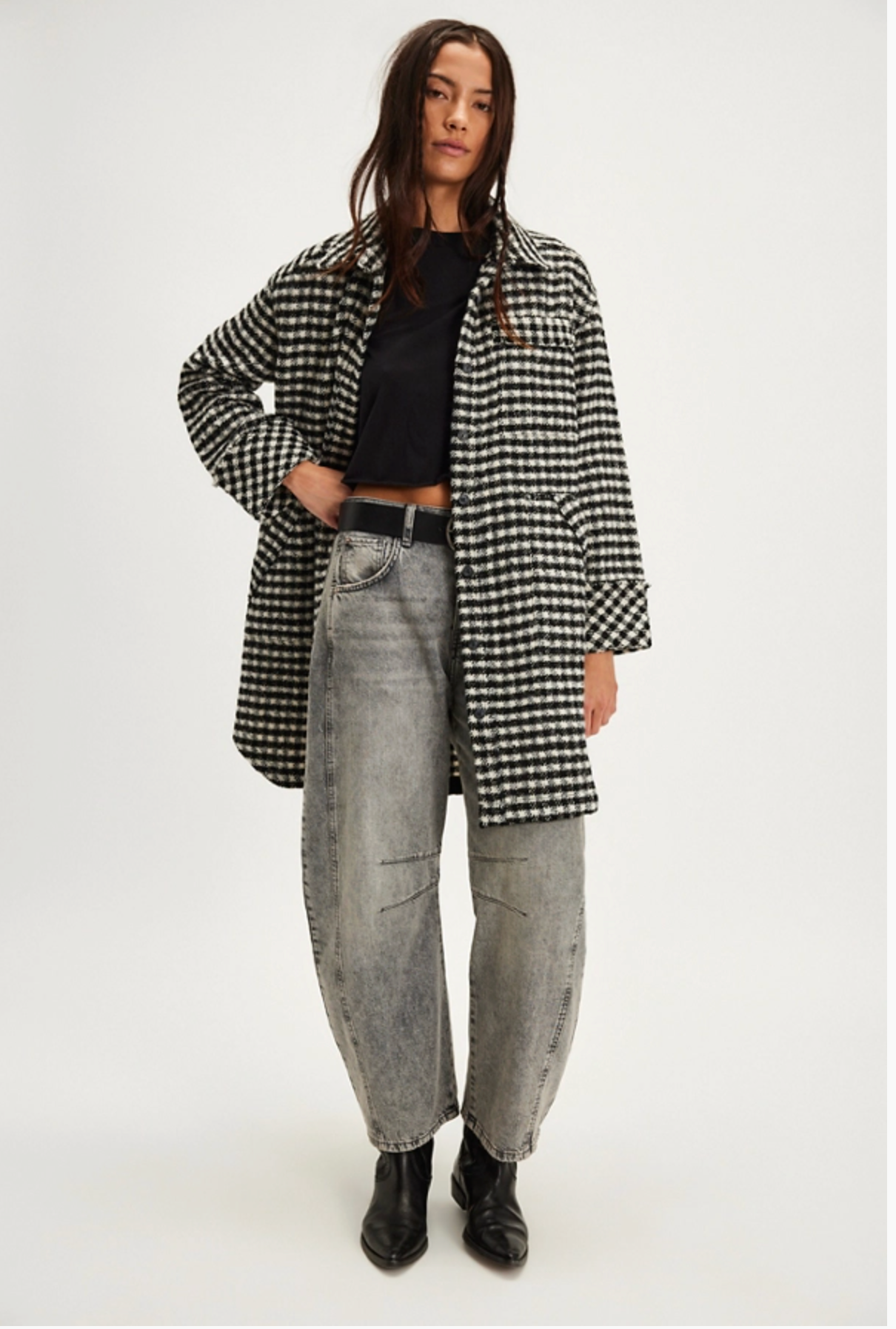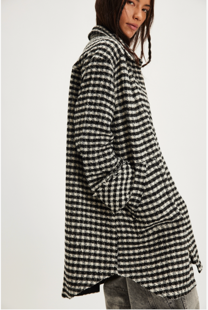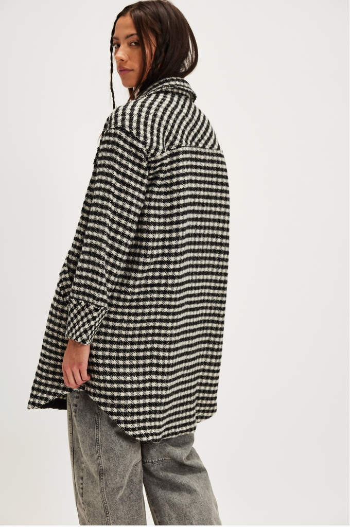 The perfect finishing touch from our We The Free collection, this shacket features a sophisticated houndstooth fabrication and longline silhouette with a collared-neckline and patch-pocket detailing.