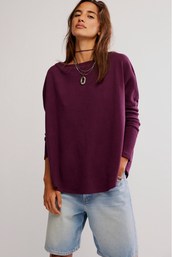 Featured in the perfect billowy fit, this oversized thermal from We The Free is all you need for endless laidback outfitting. pair with your favorite jeans and boots nad you have a cozy fall/winter outfit!